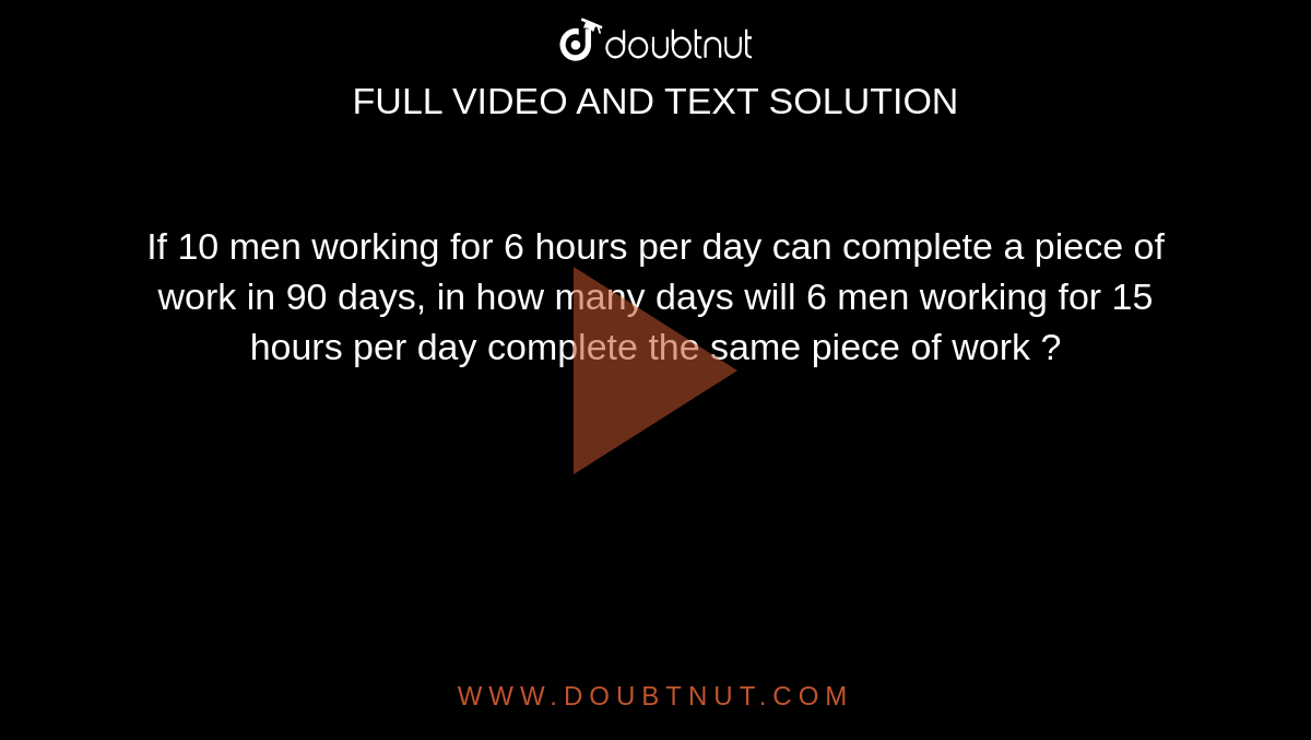 4 Men Each Working 6 Hours Per Day Can Build A Wall In 9 Days How Long Will 6 Men Each Working 3 Hours Per Day Take To Finish The Same Work